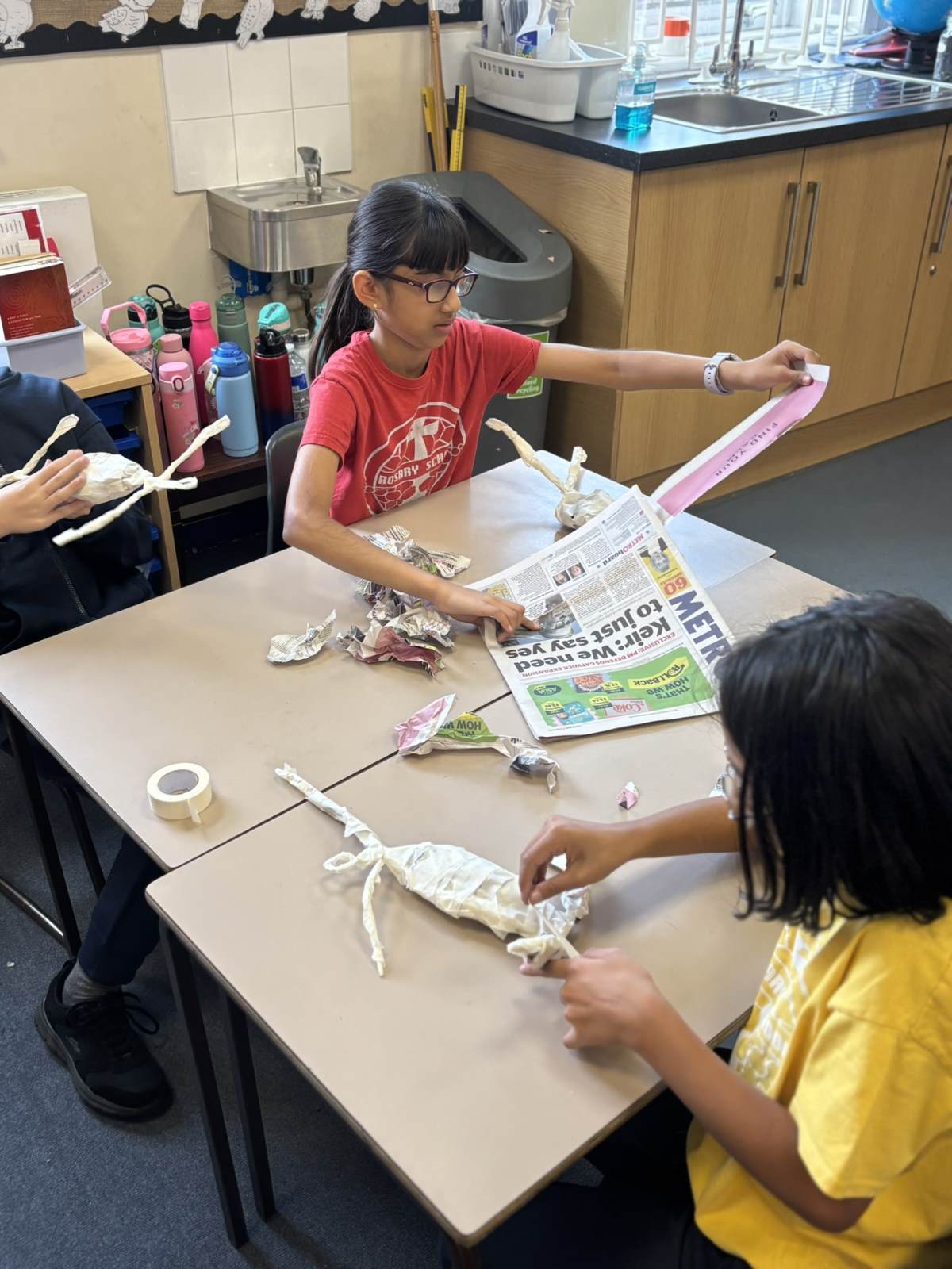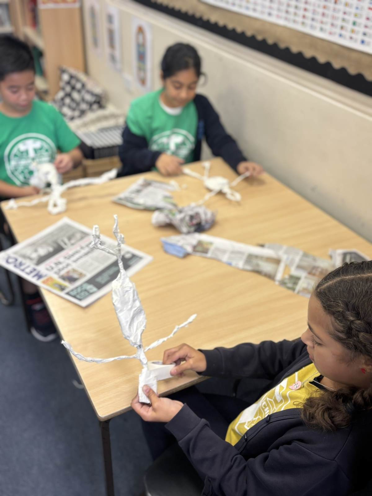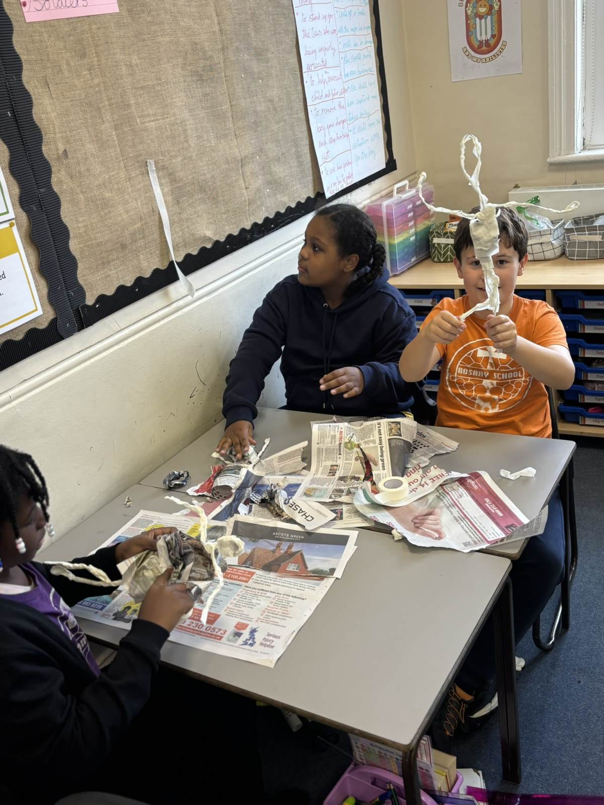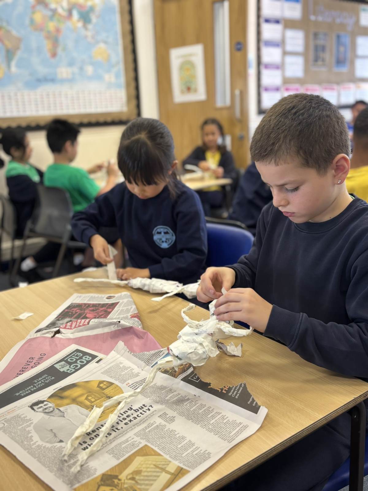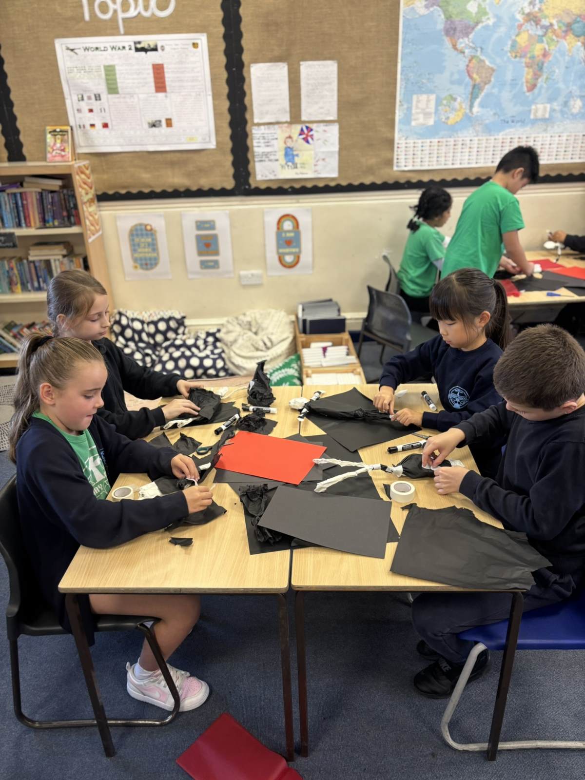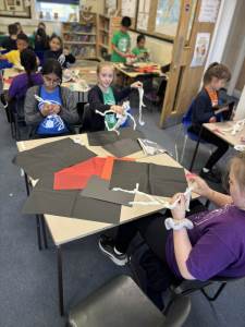 Our art lesson was a fantastic creative session where we brought our WW2 topic to life by making soldier sculptures 🎨. Using simple materials like wire for the armature, tissue paper to bulk out the form, and sugar paper for the uniforms, we crafted figures in various dynamic poses. To get our soldiers just right, we carefully studied photographs and paintings of WW2 soldiers for inspiration, paying close attention to their stance, equipment, and expressions. This observation helped us accurately shape the wire into realistic poses, like marching, standing guard, or looking out over the battlefield, resulting in a collection of powerful and expressive sculptures that added a wonderful visual element to our study of the war.