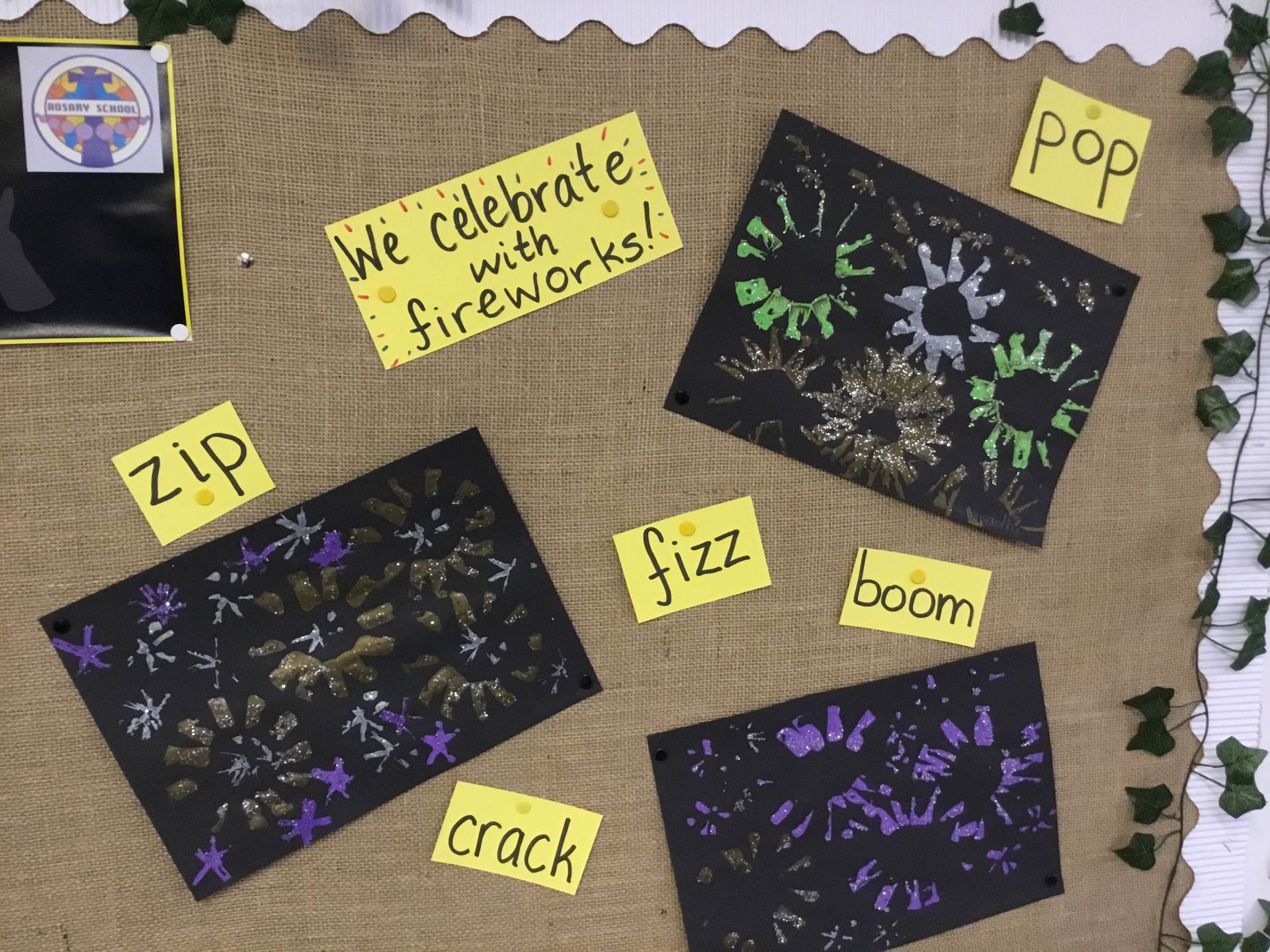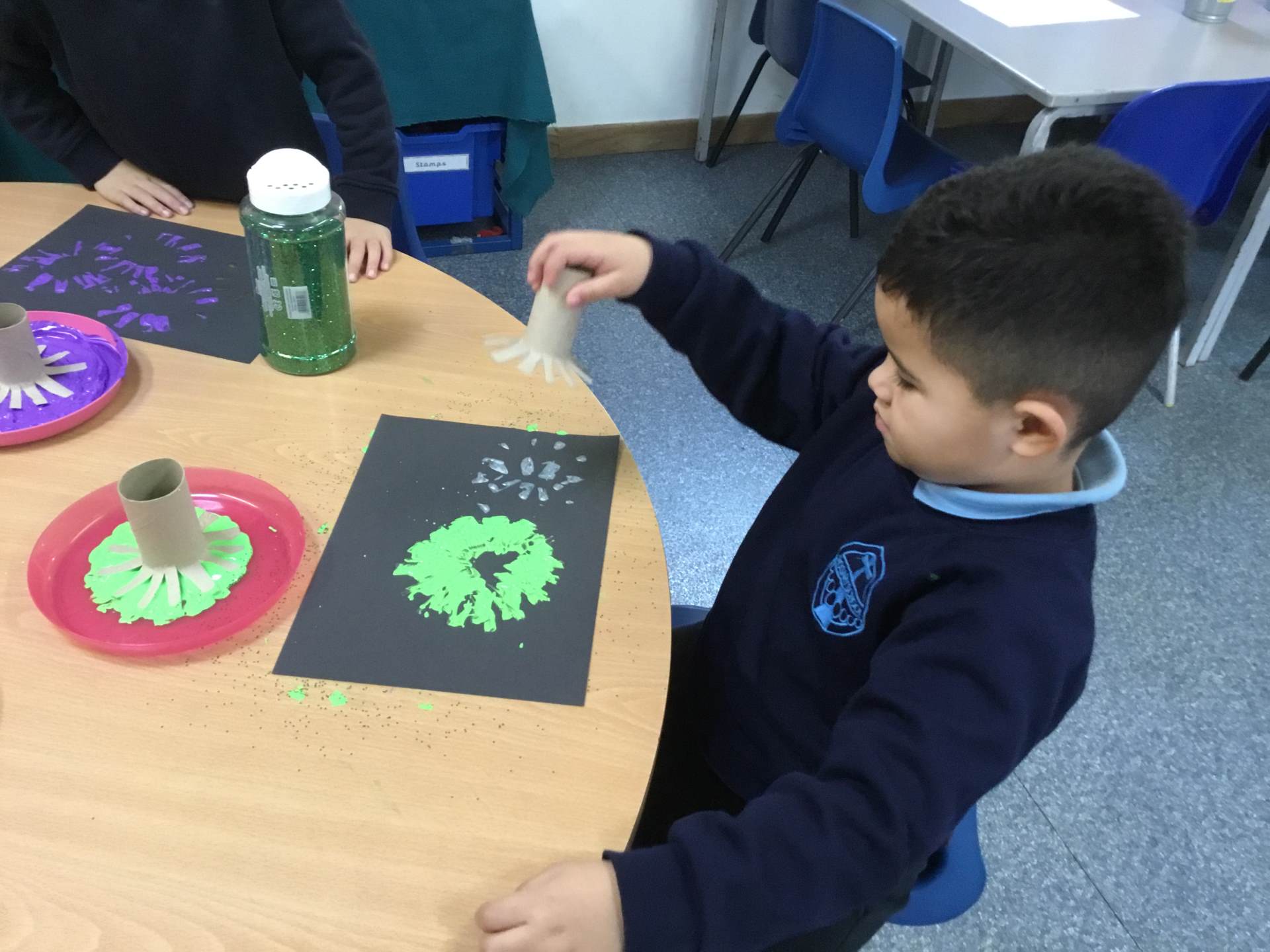 For our topic Festivals and Light we have been learning about many different celebrations. This week we spent time learning about Bonfire Night. We learned about fireworks and talked about the colours we would see and the sounds we would hear. We made artwork to celebrate.