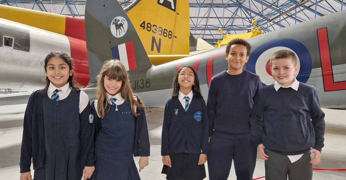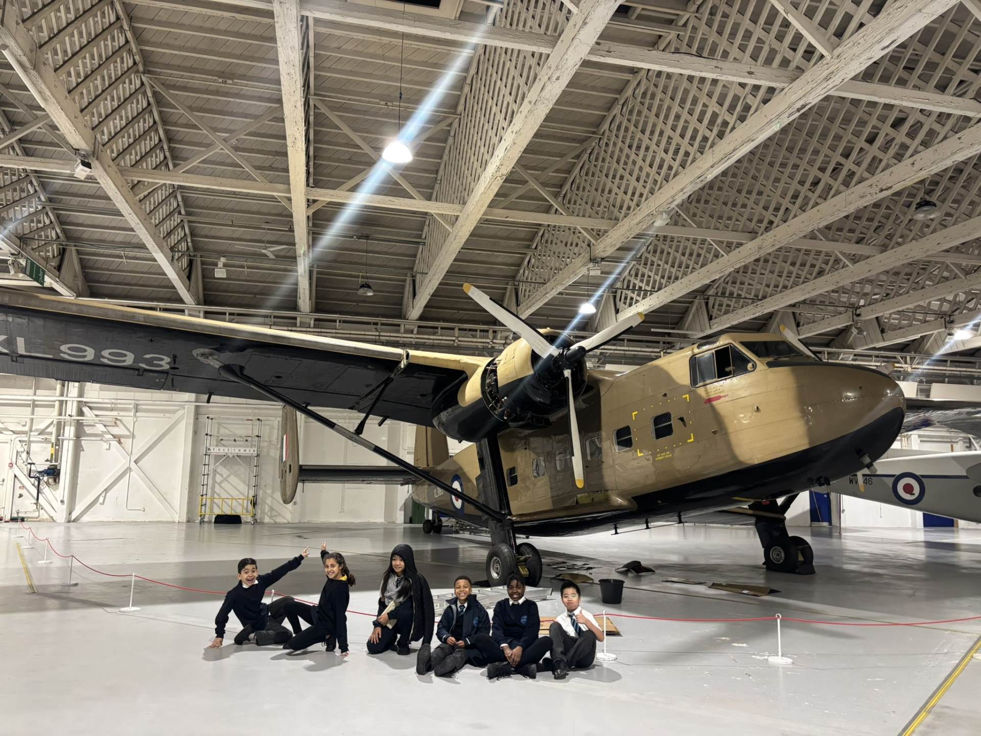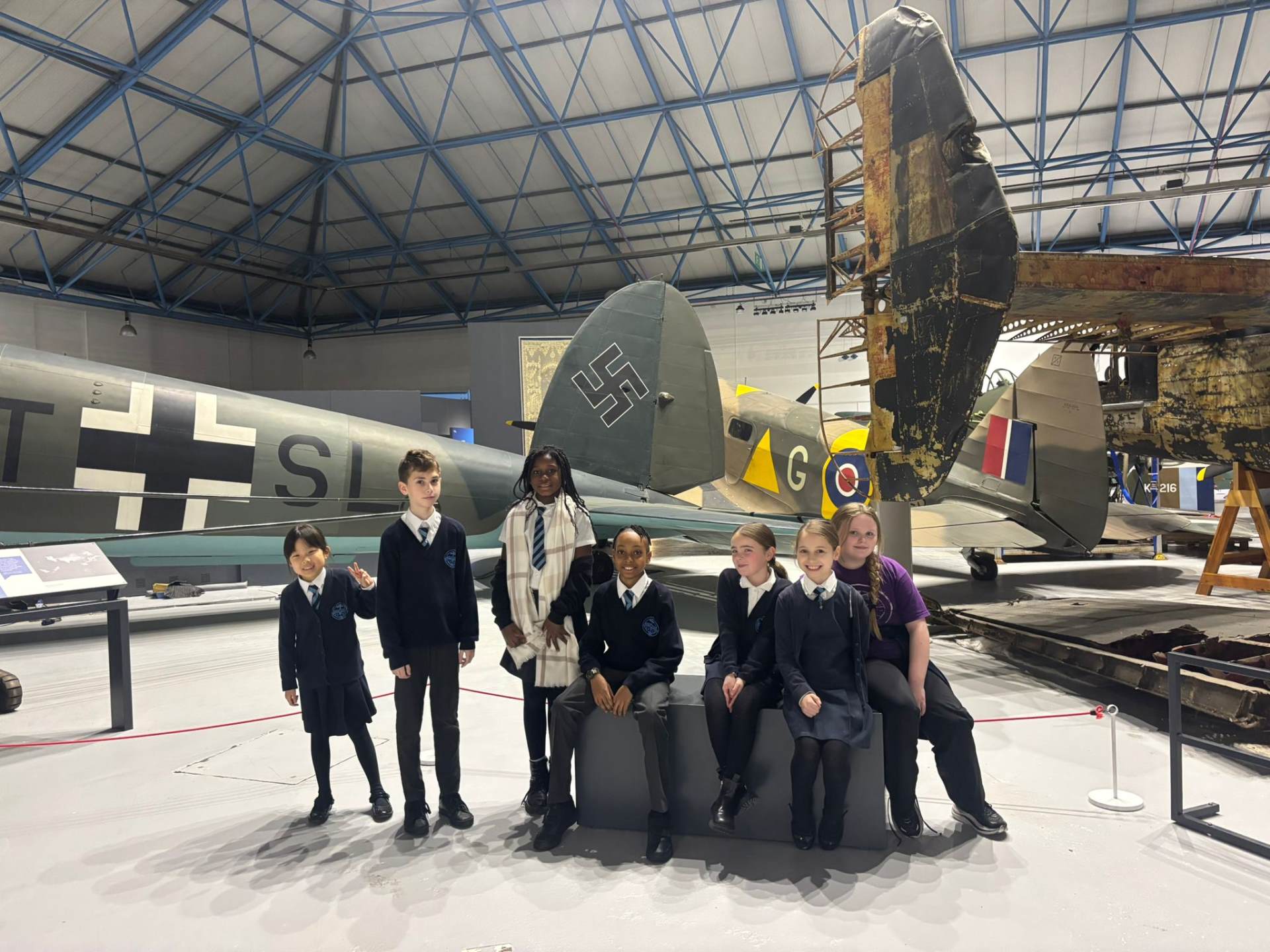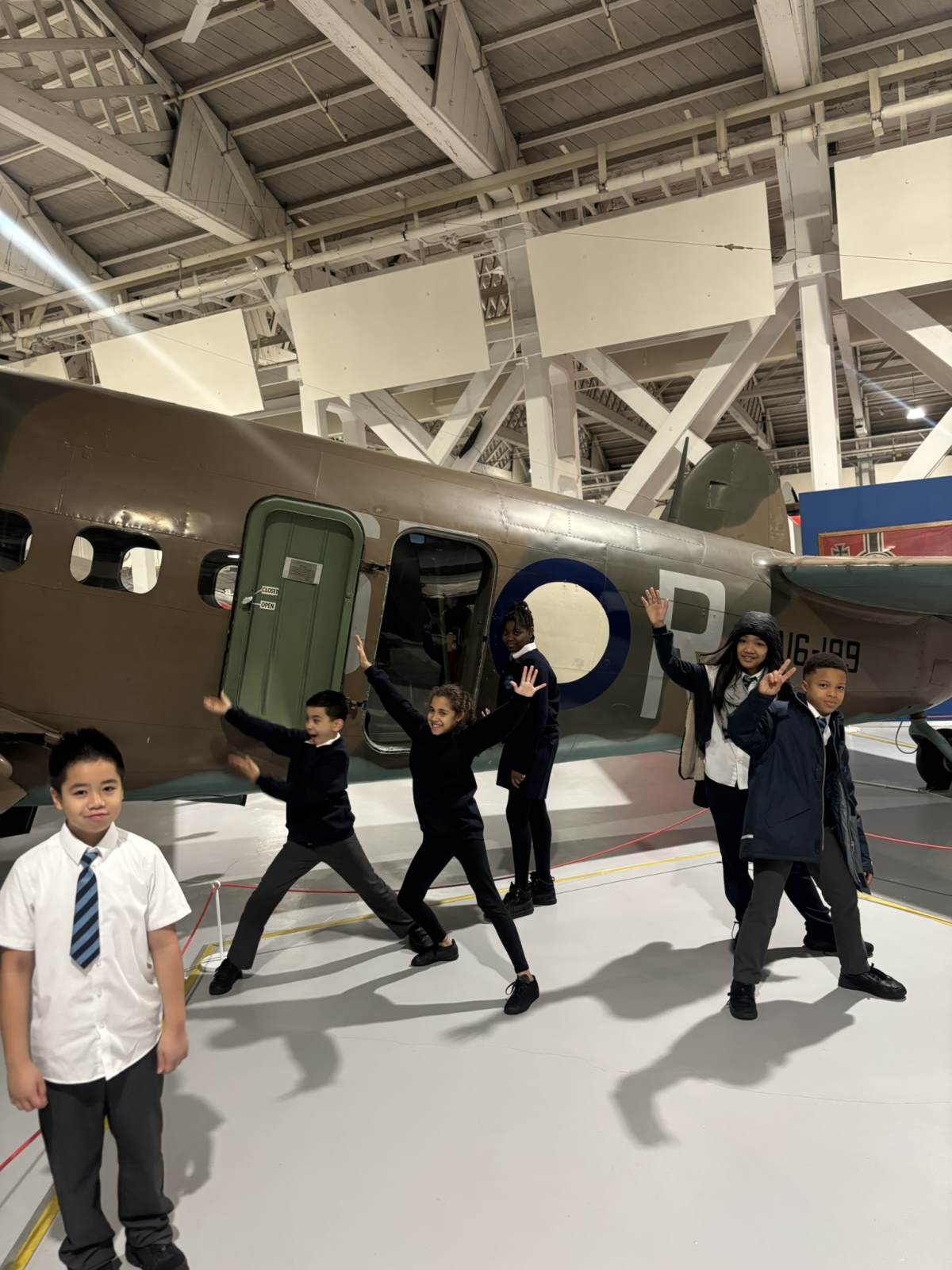 The Snowy Owls Year 5 class enjoyed a fascinating school trip to the RAF Museum today as part of our World War II topic! We had the incredible opportunity to see the real aircraft of different countries up close, making our learning about wartime aviation truly spectacular. We then took part in a brilliant workshop called "Christmas During Wartime," where we learned how people's lives were affected by the war and the resourcefulness required to celebrate Christmas during this challenging period. We even got hands-on experience by making traditional rag rugs and learned all about the strict rations people lived with, bringing the history of the home front to life.