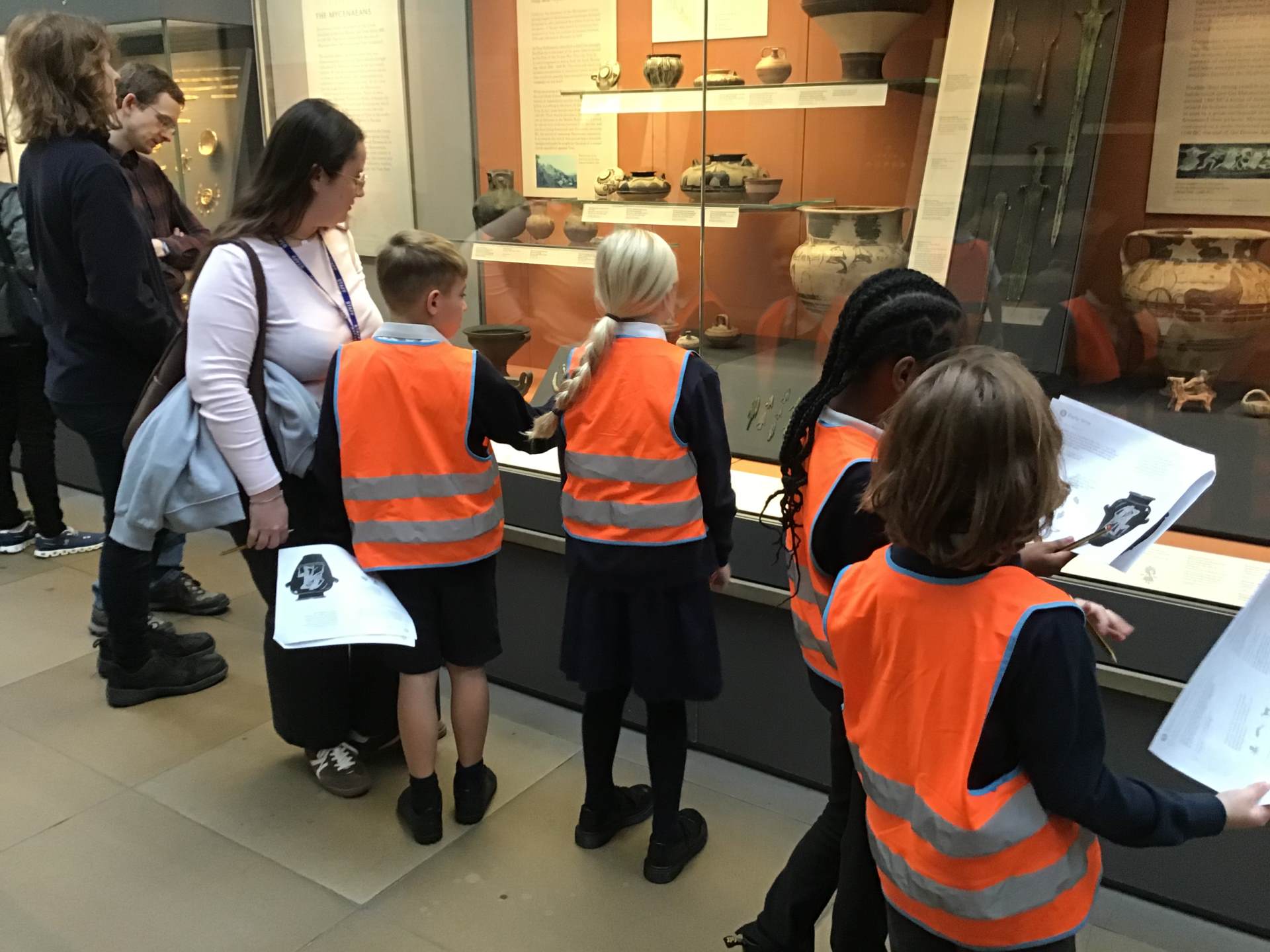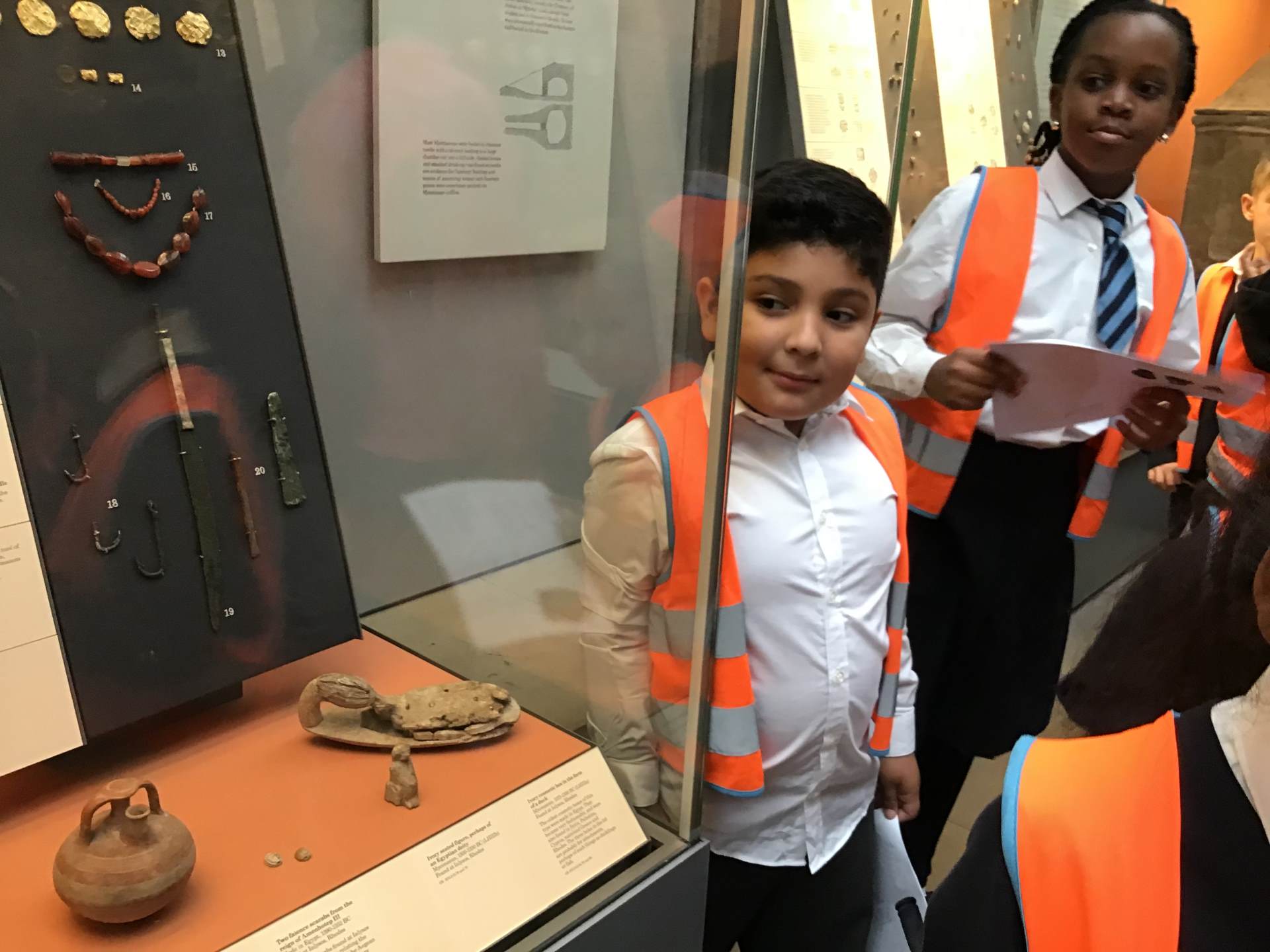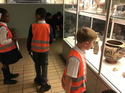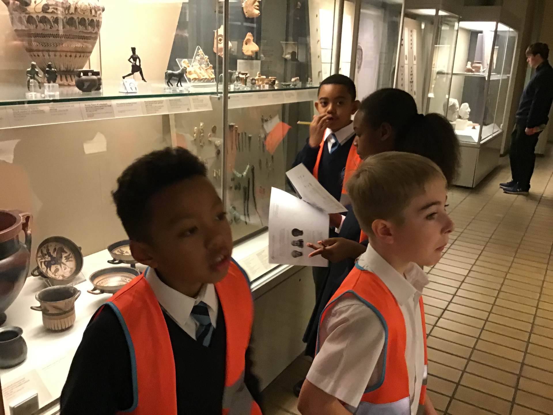 As part of our topic on Ancient Greece, we visited the British Museum to explore its incredible collection of Ancient Greek artefacts. We followed a trail that guided us through the galleries, helping us discover treasures from different periods of Greek civilisation, including the Minoans, Mycenaeans, and the world of Alexander the Great. We were prompted to spot precious objects and ancient tools, identify animals and patterns on pottery and copy the poses of statues and friezes. The experience brought Ancient Greece to life and helped deepen our understanding through exploration, observation and storytelling.