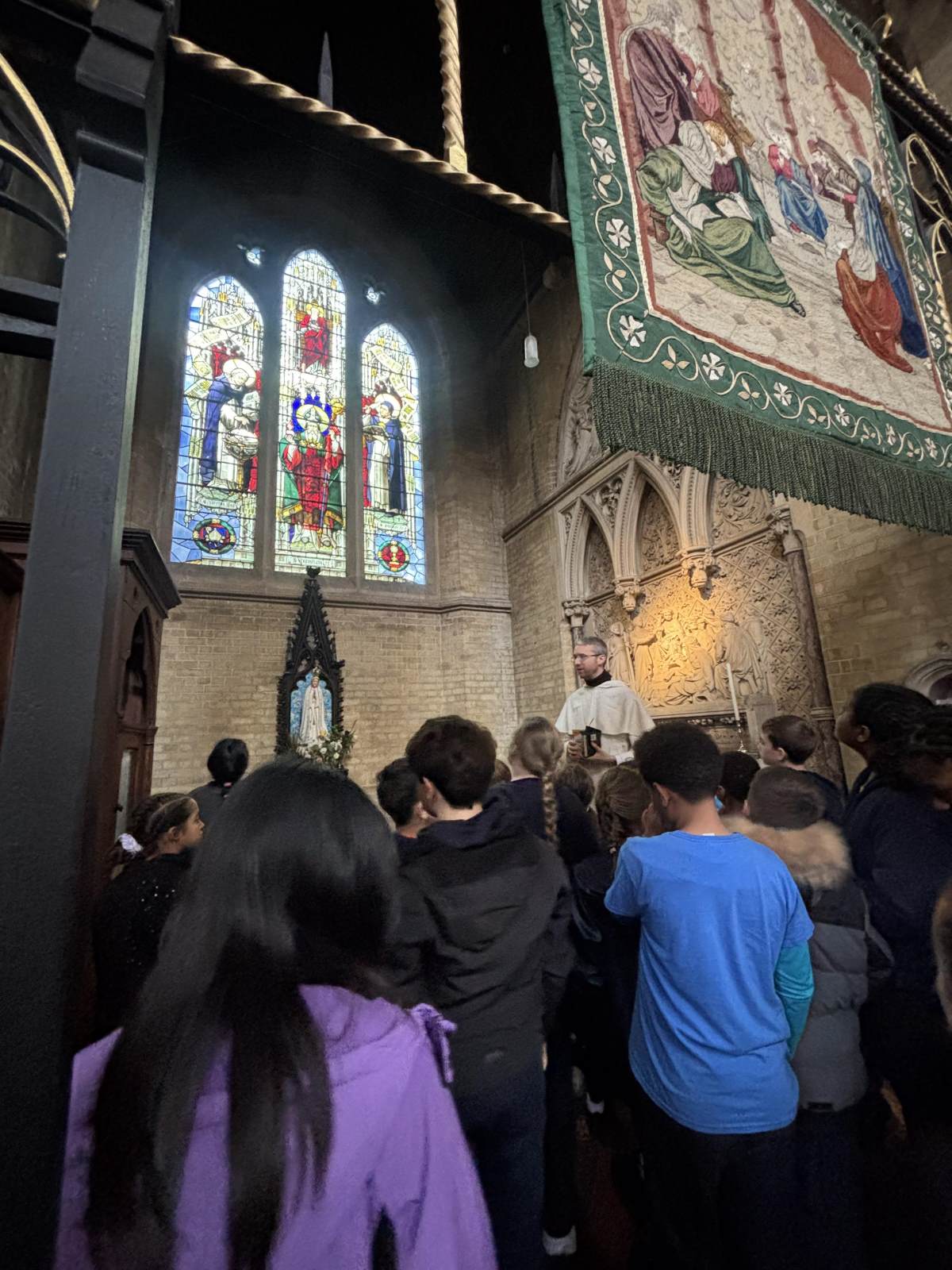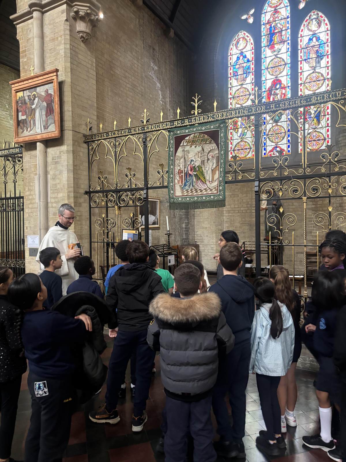 Our class had a wonderful and informative trip to our local church, St. Dominic's, to mark the special month of October, the Month of Our Lady of the Rosary . We were warmly welcomed by Father Matthew, who gave us a fantastic talk about the importance of the Rosary and its history, helping us understand why it's such a cherished prayer. The highlight was getting to see the beautiful Rosary Shrines within the church. Father Matthew walked us through the different parts of the church, showing us the statues and altars dedicated to Mary, and explaining the meaning behind the prayers and the different sets of beads. It was a peaceful and memorable visit that deepened our appreciation for our faith and the traditions associated with the Rosary.
