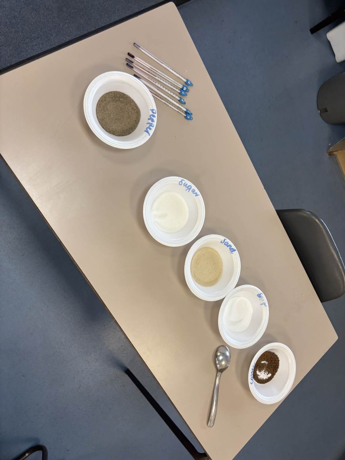 Our science lesson involved an exciting solubility experiment where we tested how well different solids dissolved in water. We used five different substances: salt, sugar, ground pepper, coffee, and sand. To ensure a fair test, we carefully controlled key variables: we used the same volume of water for each test, kept the water temperature consistent, and used a measuring timer to ensure each mixture was stirred for the exact same duration. We observed that salt and sugar were highly soluble, dissolving completely to form clear solutions. Coffee was also soluble, leaving a dark liquid. However, ground pepper and sand were insoluble; they remained visible and settled at the bottom of the beaker. Our conclusions showed that solubility is a property that varies greatly between different materials, even when all other experimental conditions are kept the same.